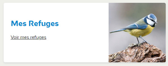 - Dans le bloc "Mes Refuges" cliquez sur Voir mes refuges (si vous ne visualisez pas votre Refuge sur votre compte contactez-nous sur refuges@lpo.fr ).