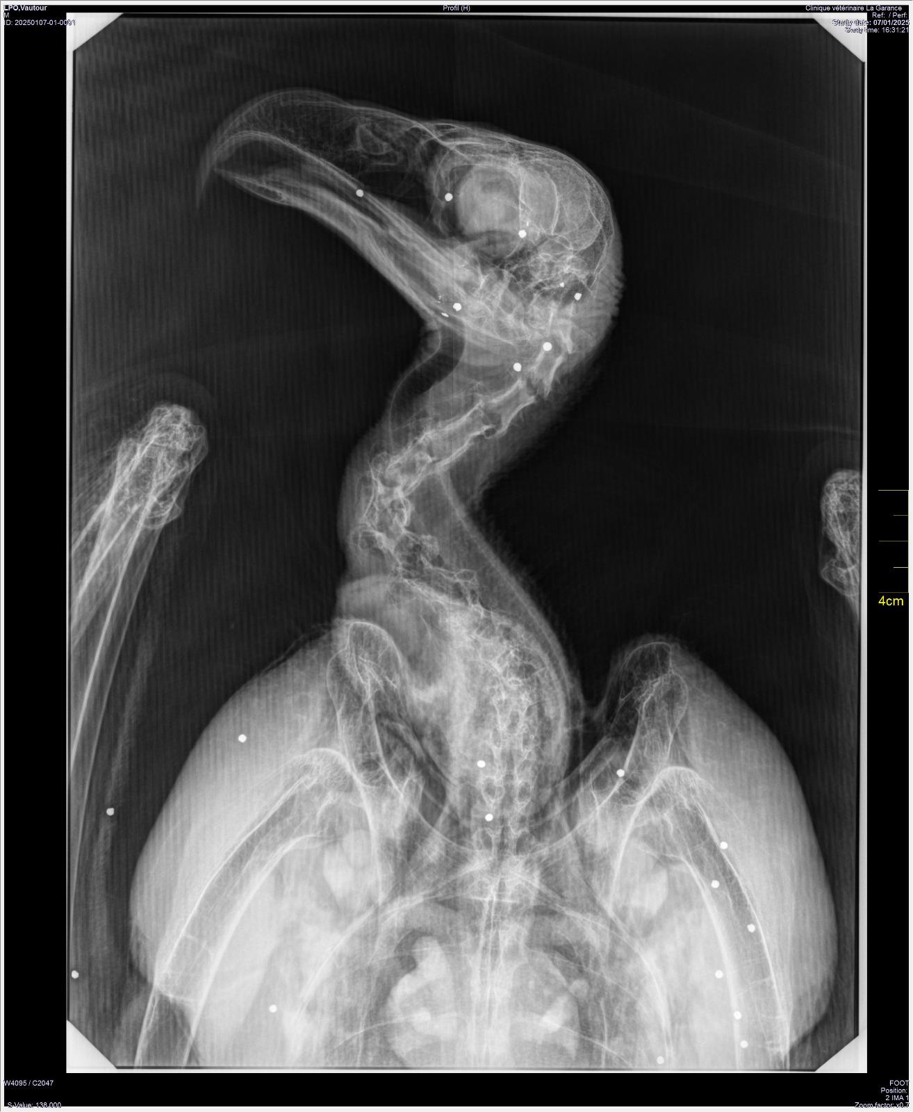 ILD est restée en soins intensifs pendant plusieurs semaines. Elle a subi une opération pour lui retirer le plus gros plomb dans l’aile, réalisée par le Dr Frank Dupraz, notre vétérinaire référent, qui nous a aussi fourni des conseils tout au long de sa convalescence et que nous remercions chaleureusement.