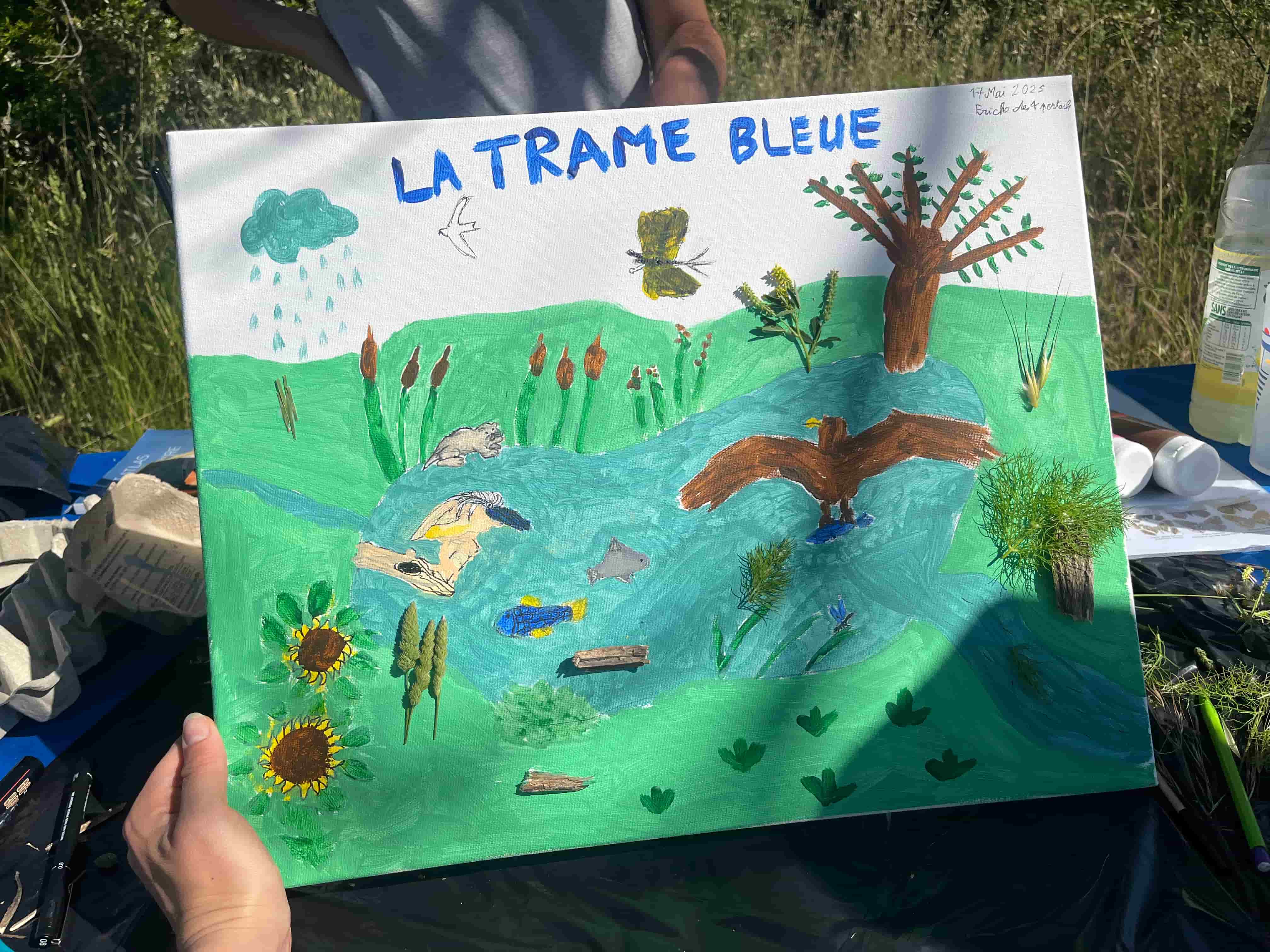 Voici l’œuvre d’art de Marc et Louis qui ont décidé de représenter la trame bleue :