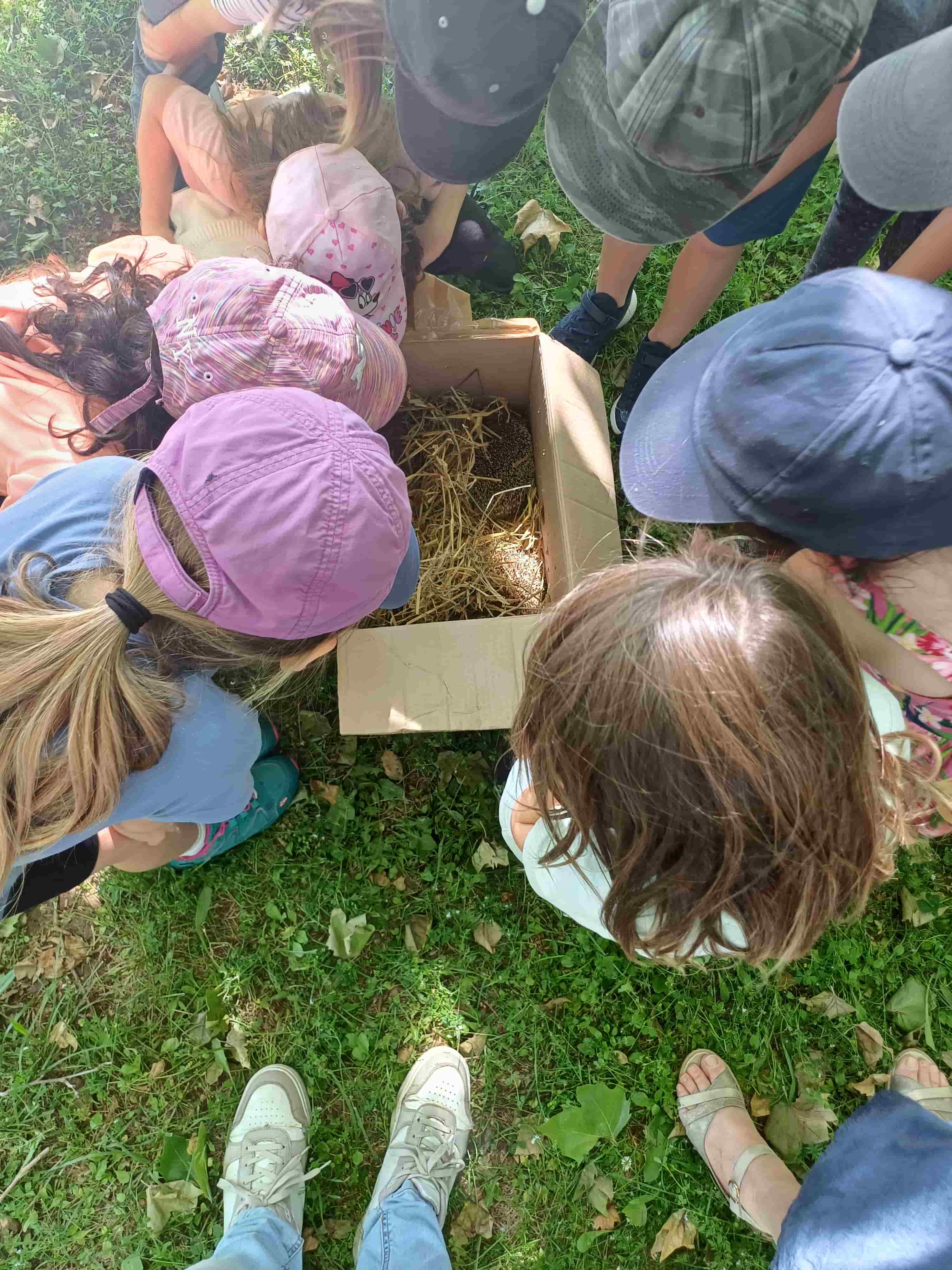 L'inauguration s'est terminée par la présentation aux enfants des quatre hérissons sauvés par le CRSFS de la LPO PACA. Ils ont été relâchés à proximité des abris à hérissons au calme à la nuit tombée.