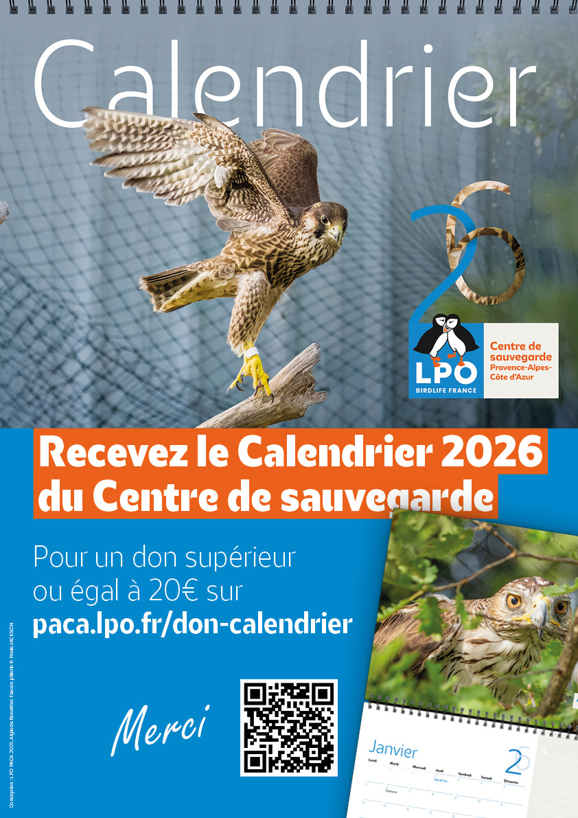 Pour tout don supérieur à 20 € que vous réaliserez au travers du formulaire de don en ligne dédié, accessible à cette adresse « paca.lpo.fr/don-calendrier », nous vous enverrons le calendrier du Centre de sauvegarde.