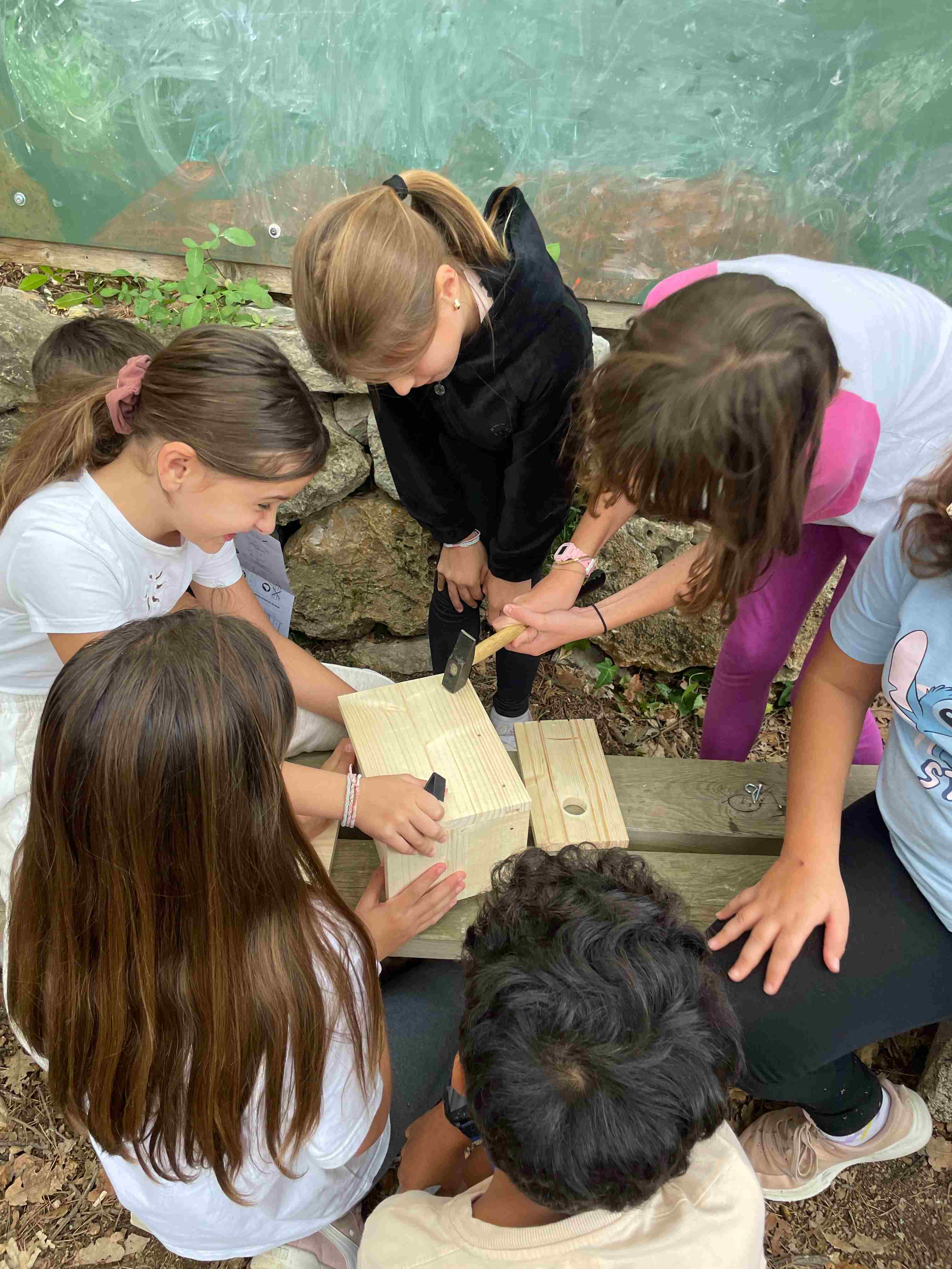 Dans un deuxième temps, l’animation s’est poursuivie en extérieur. Les enfants se sont rendus au niveau des parcs de La Foux, Chabran ou Haussmann, inscrits au programme Refuge LPO©, pour un atelier construction de nichoirs à mésanges. Après cette session bricolage, les élèves ont eu pour mission de choisir un arbre idéal pour installer les nichoirs construits. La pose des nichoirs fut effectuée par Maurin, agent technique à la mairie de Draguignan, assisté par les élèves des différentes classes.