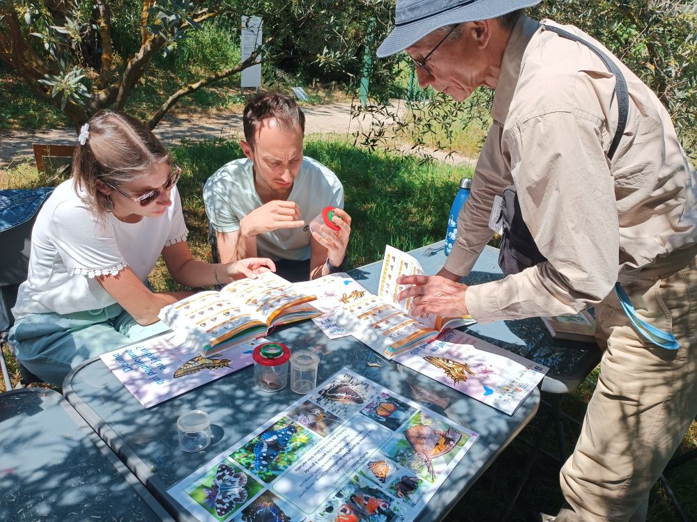 Equipés de filets à papillons et boîtes loupe, direction le jardin pour mettre en pratique et réaliser de belles observations de Machaon, Citron de Provence, Piéride de la rave, Collier de corail, Tircis, Fadet commun, favorisés par les grands espaces laissés non tondus et la diversité des haies nourricières.