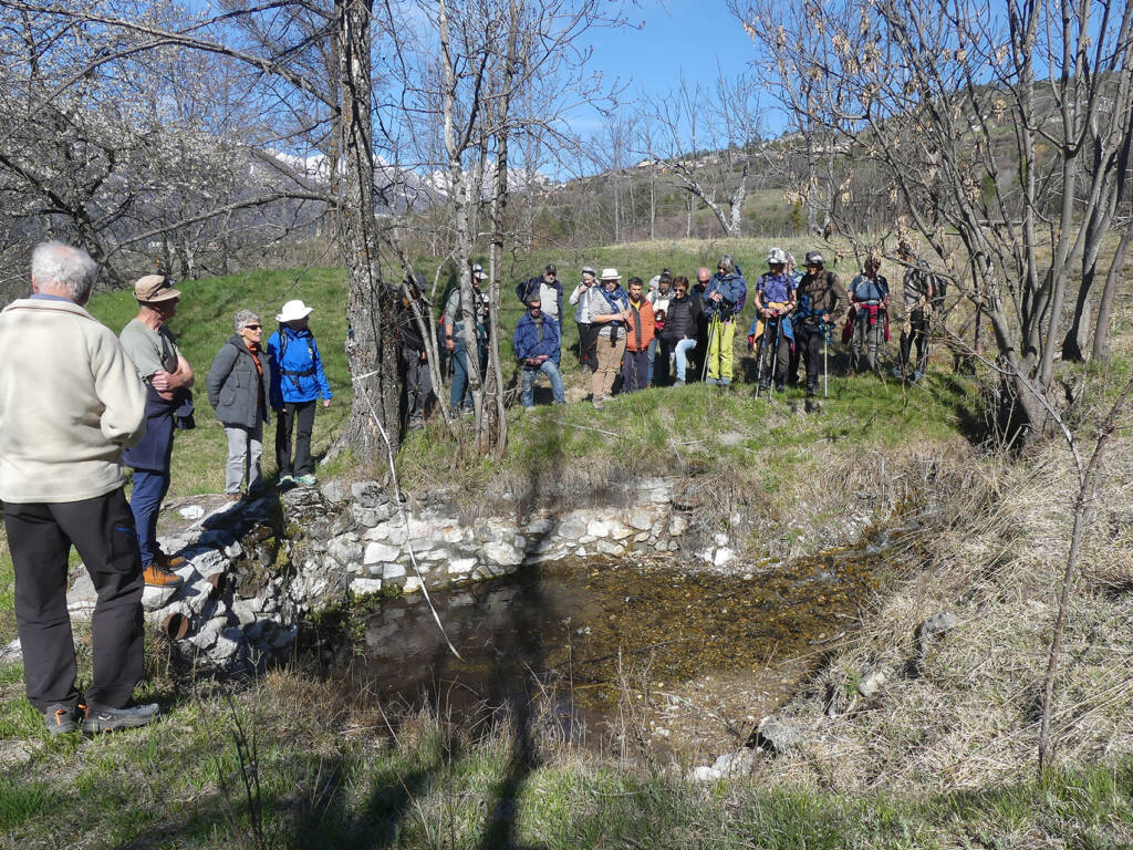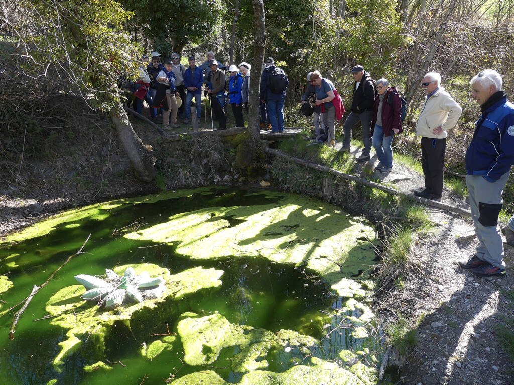 Samedi 4 avril, par un temps radieux devenant chaud en fin de matinée, plus de 25 personnes ont parcouru le sentier de découverte des Naïs de la Font d’Eygliers en compagnie d’Anne Chouvet, grande connaisseuse des ces réservoirs de pierre et d’argile, construits il y a très longtemps pour stocker l’eau des sources et permettre l’arrosage des cultures ou des vergers mais aussi le rouissage du chanvre. A une époque où il n’y avait pas d’autre choix que de vivre en autarcie, le chanvre produit sur place était bon à tout faire : vêtements, draps, sacs, ficelles et cordelettes. Balade patrimoniale très instructive où il a même était question du discret sonneur à ventre jaune dont un individu a été vu en d’autres occasions en pied de sentier.