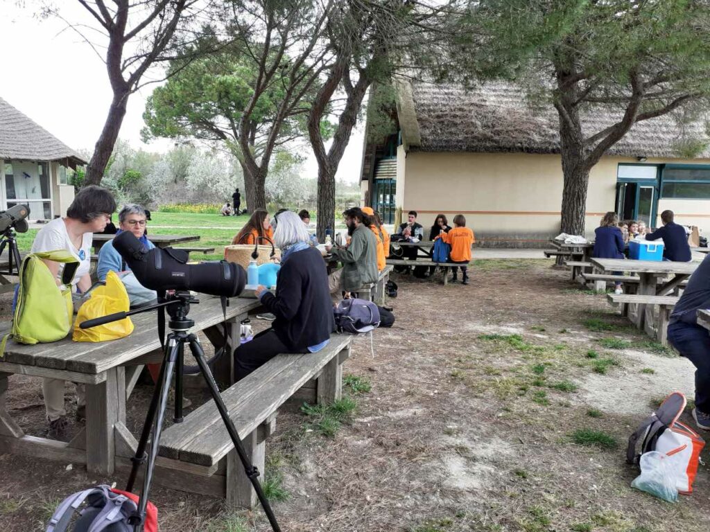 Ils ont pu y découvrir une panoplie d’oiseaux des zones humides, cigognes blanches en nidification, flamants roses, hérons cendrés, aigrettes garzettes et grandes aigrettes, ibis falcinelles, grèbes huppés, échasses blanches, la nette rousse et son oeil rouge, grands cormorans, poules d’eau, foulques macroules, des bouscarles de Cetti pour une fois pas timides, … Apprendre à différencier le goéland leucophée de la mouette rieuse et celle-ci de la sterne pierregarin, le moineau friquet du moineau domestique.