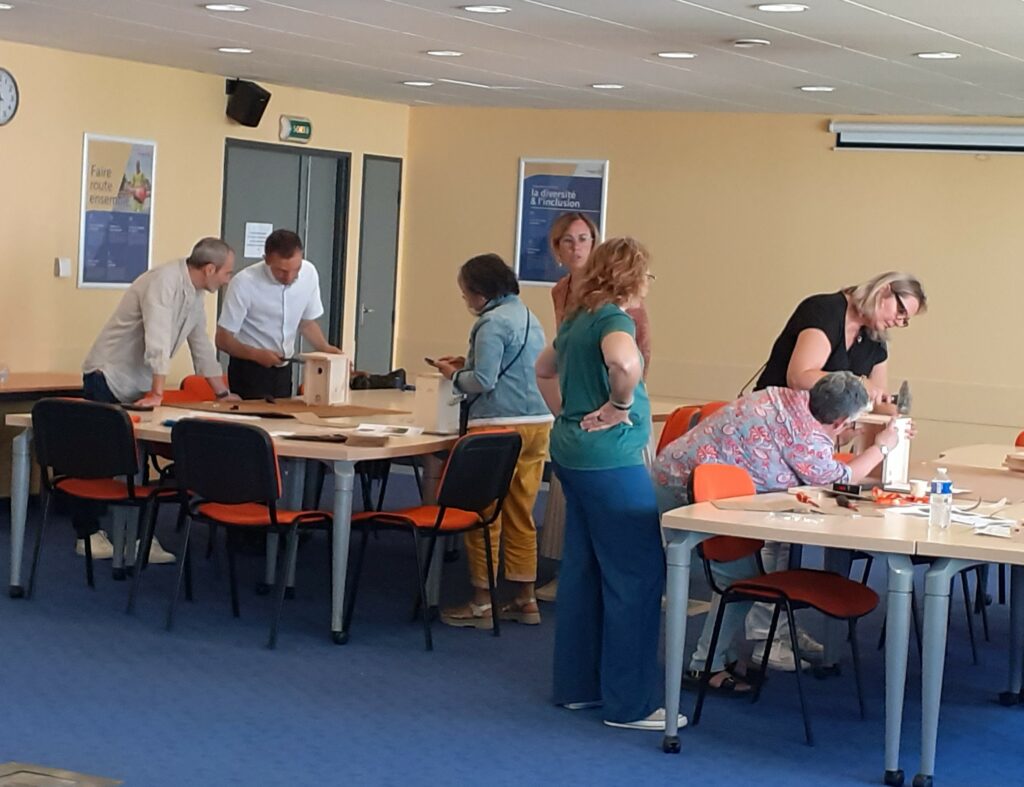 Le Héron d’Avignon était sollicité pour animer un atelier à la demande de l’entreprise Vinci, sur la fabrication de nichoir à mésanges devant être posés sur leur site pour lutter contre la processionnaire du pin.