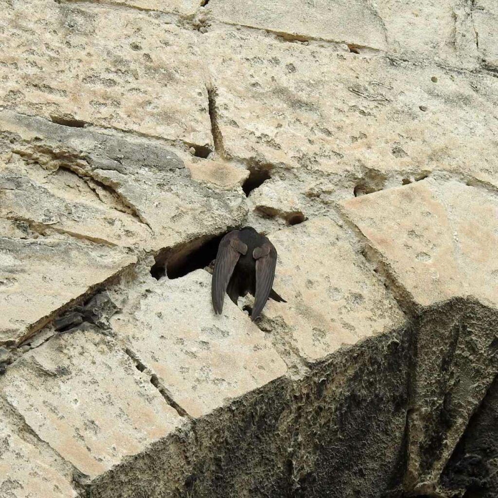 Dans le verger Urbain V observation de la façade est du Palais, qui conserve encore pas mal d’anfractuosités hébergeant martinets noirs et faucons crécerelles.