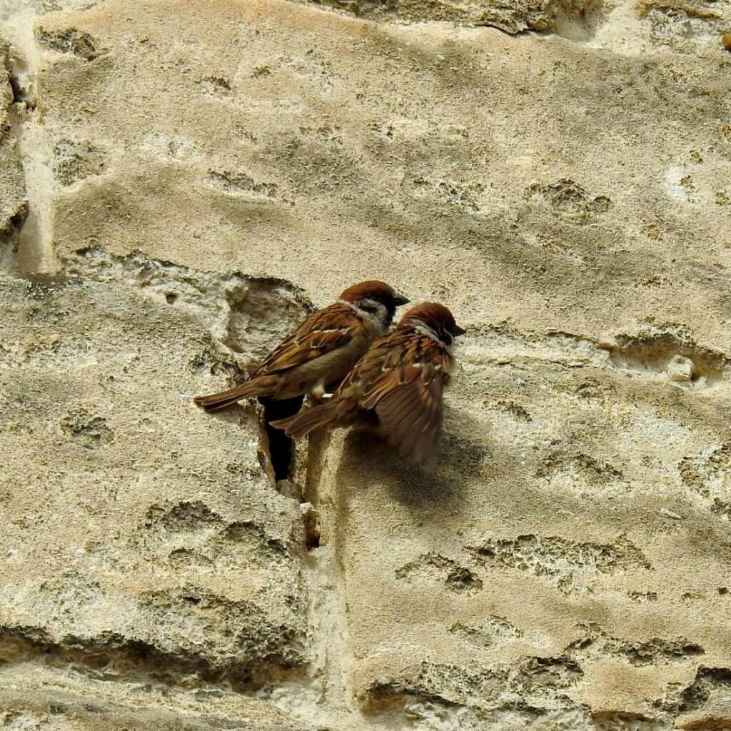 Observation des oiseaux du jardin, écoute des chants après répétition sur le poster Birdie Memory, découverte de nids de moineaux friquets et de martinets noirs sur la façade de l’église,