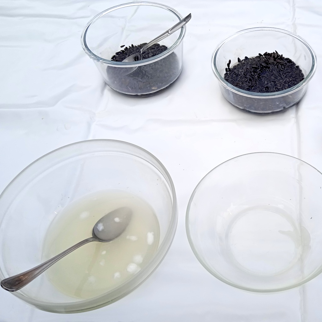 verser des graines dans les saladiers, faire fondre la végétaline au micro-onde, et la verser sur les graines.