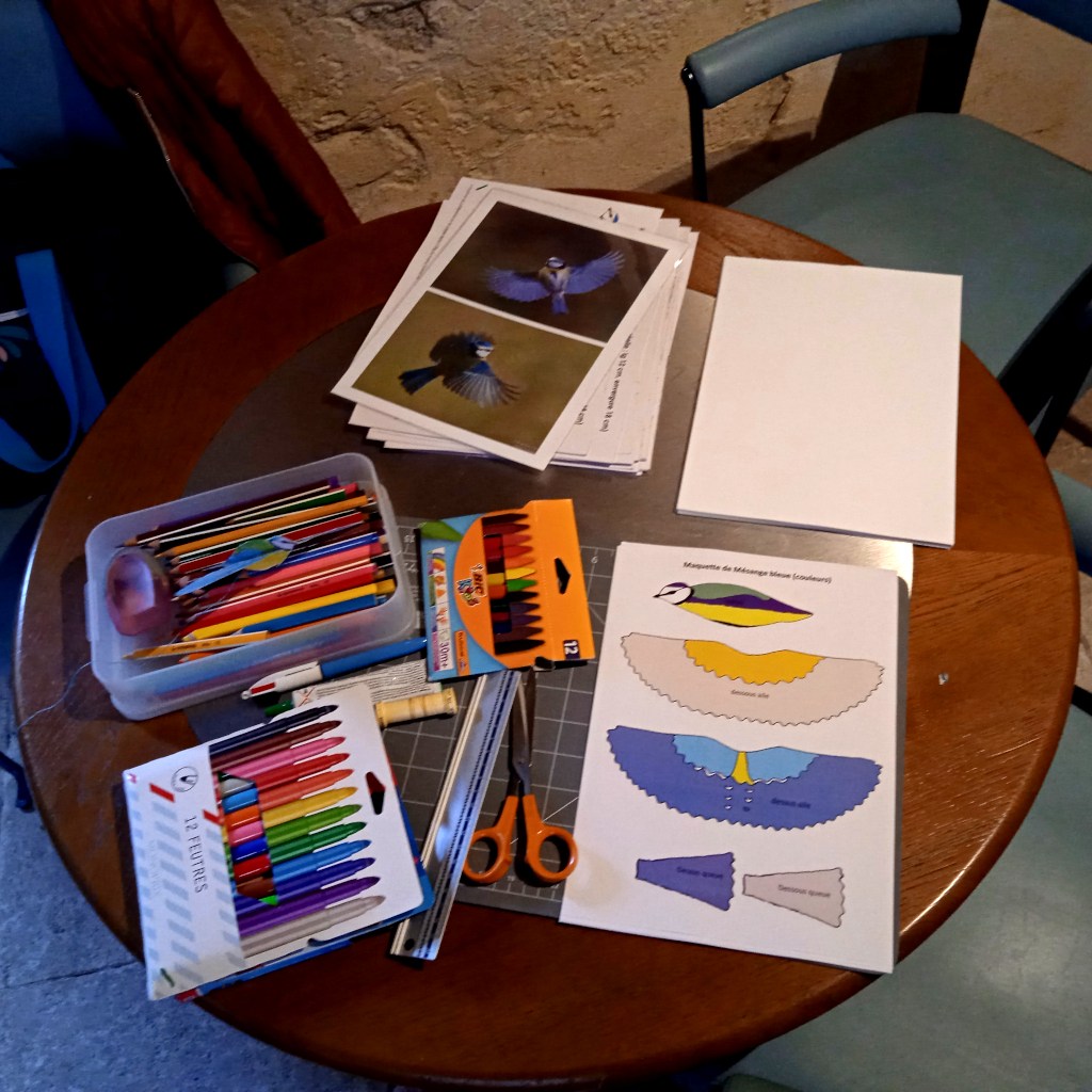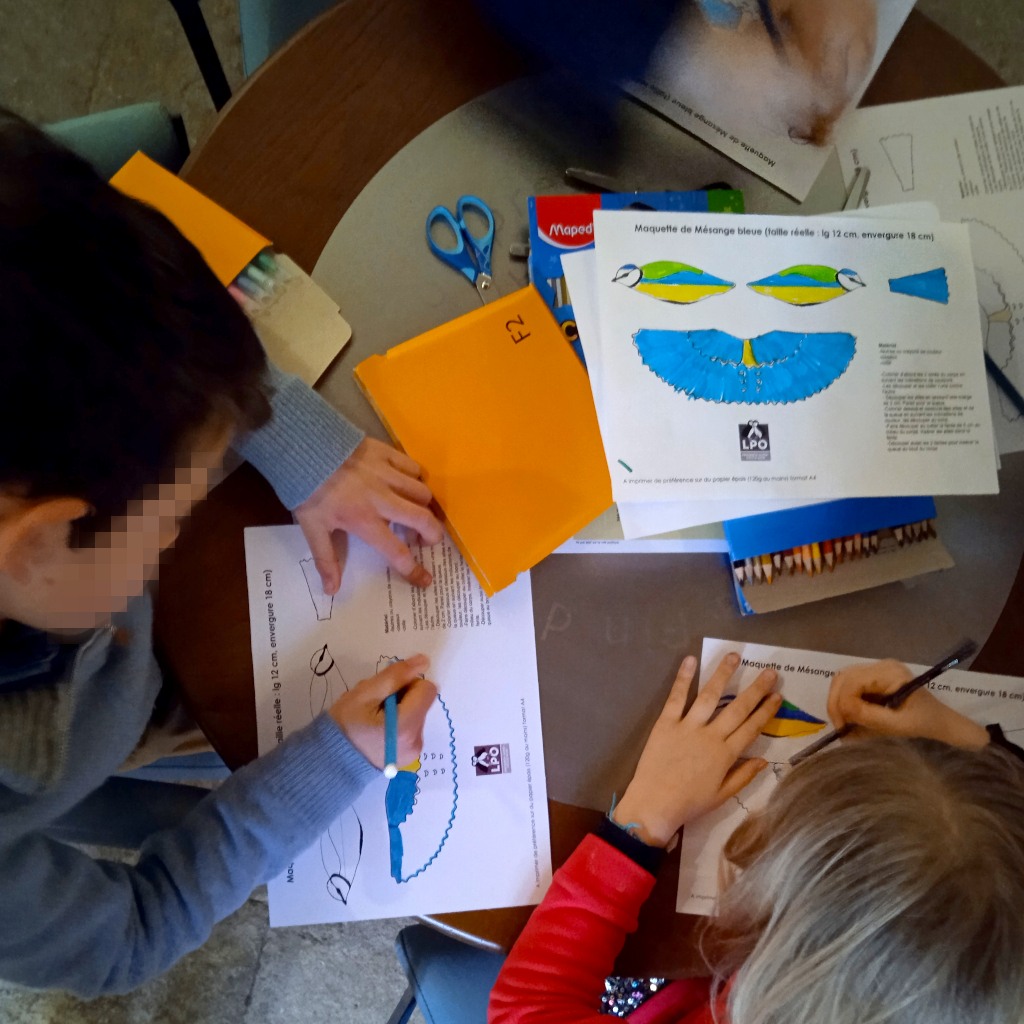 Deuxième partie de la matinée, confection d’une maquette de mésange bleue.