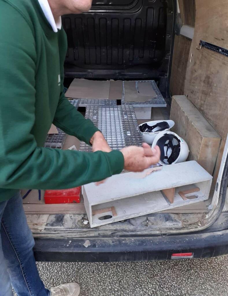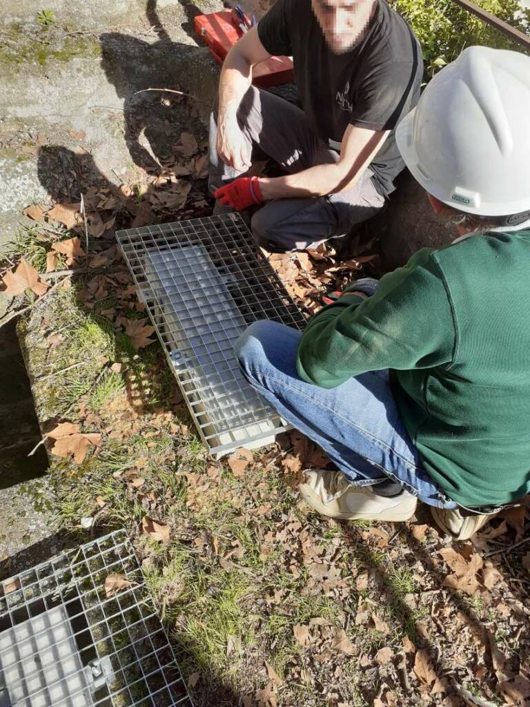 Une fois en place, le nichoir suspendu au caillebotis présente les deux orifices d’entrée vers le bas. Les martinets pourront y accéder en vol ascendant comme ils le font naturellement pour accéder à leurs nids dans la colonie installée à une centaine de mètre plus loin.