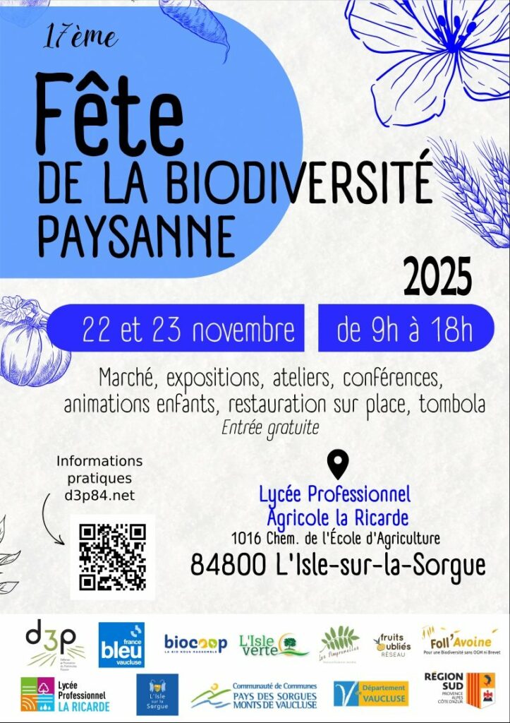 Samedi 22 et dimanche 23 novembre 2025 – L’Île sur la Sorgue. Fête de la biodiversité paysanne.