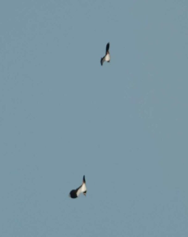Deux vanneaux passent haut dans le ciel