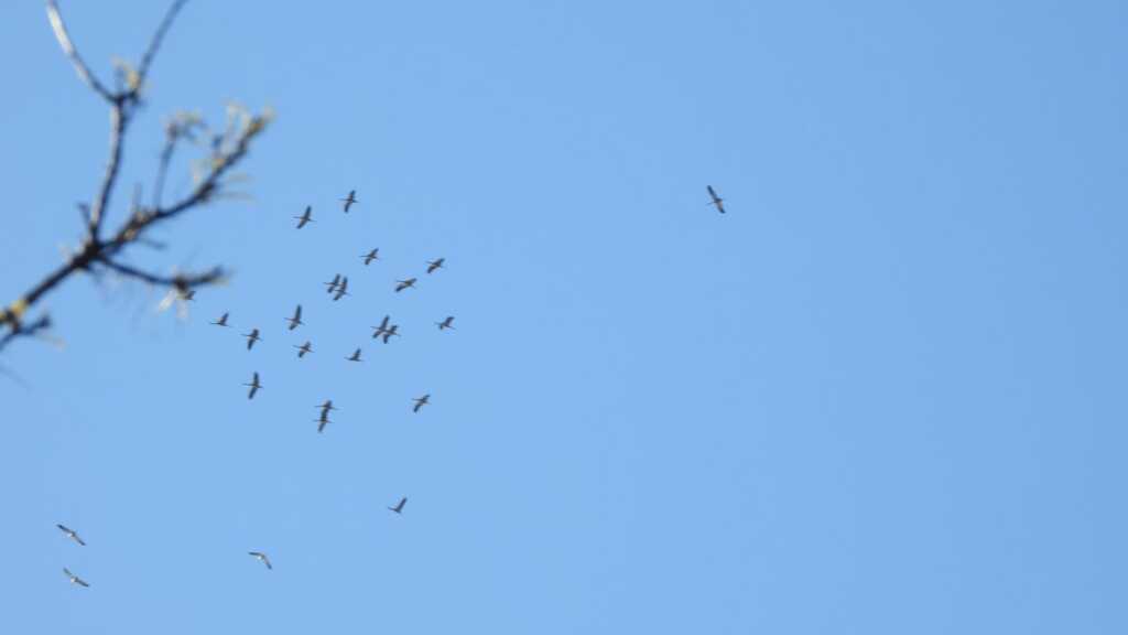 Vous avez raté une nuée d’hirondelles des rochers agrémentée de quelques hirondelles de fenêtres et de 2 ou 3 hirondelles rousselines (les premières en PACA, selon Faune-Paca, nananère c’est nous les plus fort), en fin de balade un bruit caractéristique nous fit lever la tête , afin d’apercevoir une centaine de grues cendrées haut dans le ciel (selon faune paca des milliers ont été vues dans la région ce jour),