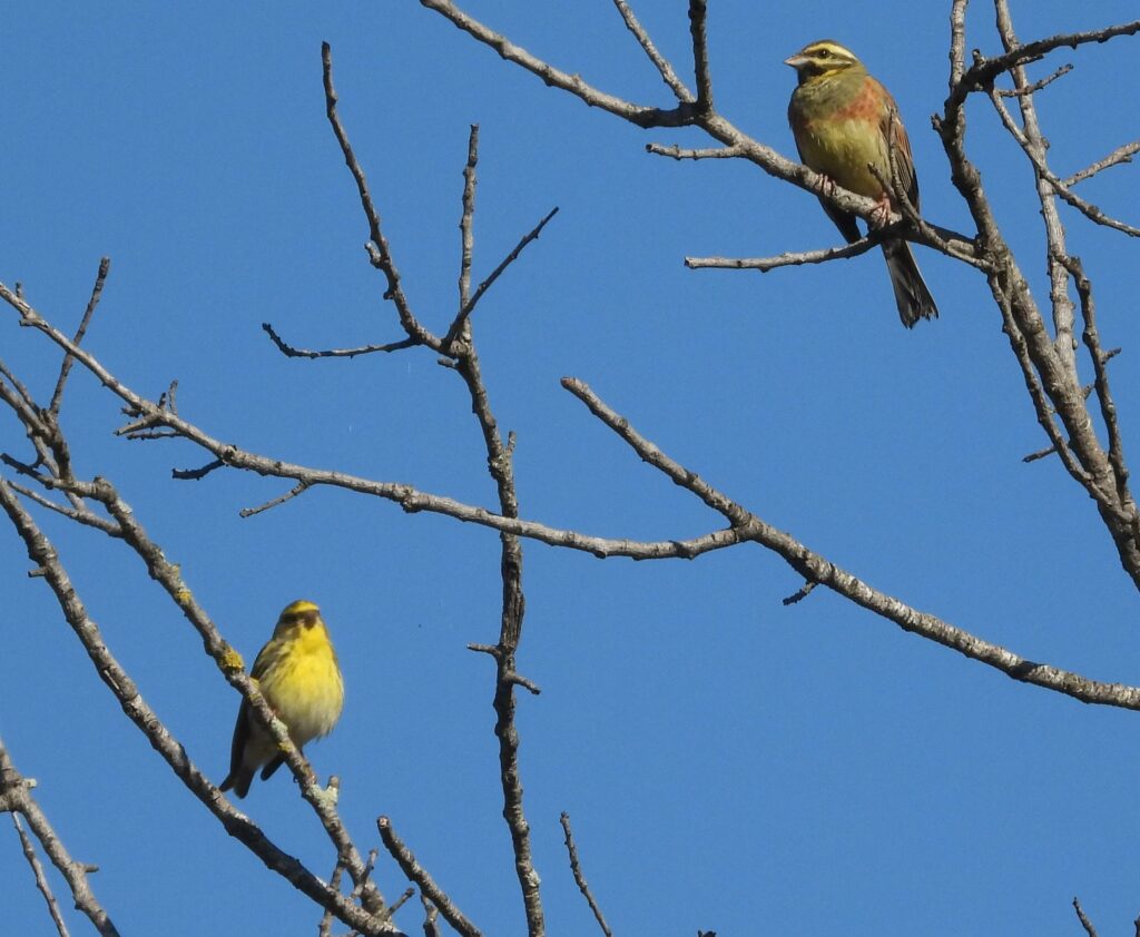 La plupart des oiseaux restent cachés ou les chants sont couverts par les beuglements de rossignols libidineux ne pensant qu’à se reproduire. Une couleuvre à échelons est aperçue ainsi que moult papillons.
