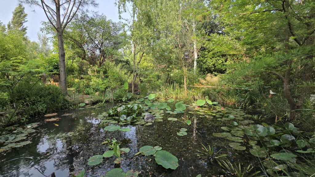 Un jardin qui à la fois sollicite les 5 sens et qui, après le repas, favorise l’endormissement à l’ombre du « Barnum » associée aux chants des nombreux oiseaux.