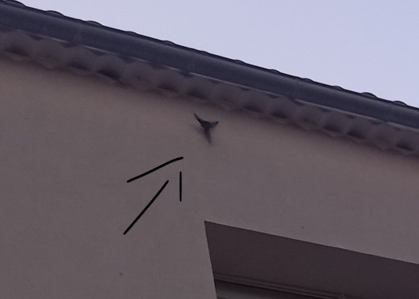 mais c’est pas tout ! Après avoir enfin trouvé des nids de Martinets, c’est sur la façade d’un deuxième logement que l’on voit cette fois non pas un ou deux, mais une dizaine d’adultes en train de nourrir les jeunes !