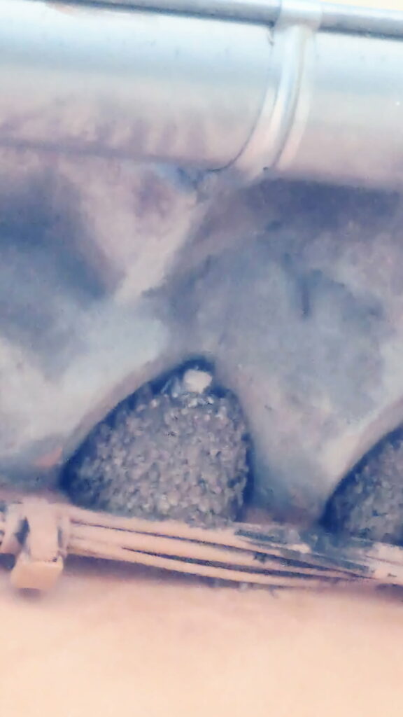 On remarque ensuite beaucoup de nids autour de la place de l’église, on entend et on voit de plus en plus de Martinets en s’approchant de la gare mais toujours pas de nids détectés, puis, Marie-Claire s’est souvenue d’un endroit, des bâtiments derrière le chemin de fer. Une fois arrivés, on voit effectivement des trous sur la façade d’un premier logement, et 2 Martinets y entrent à toute vitesse..