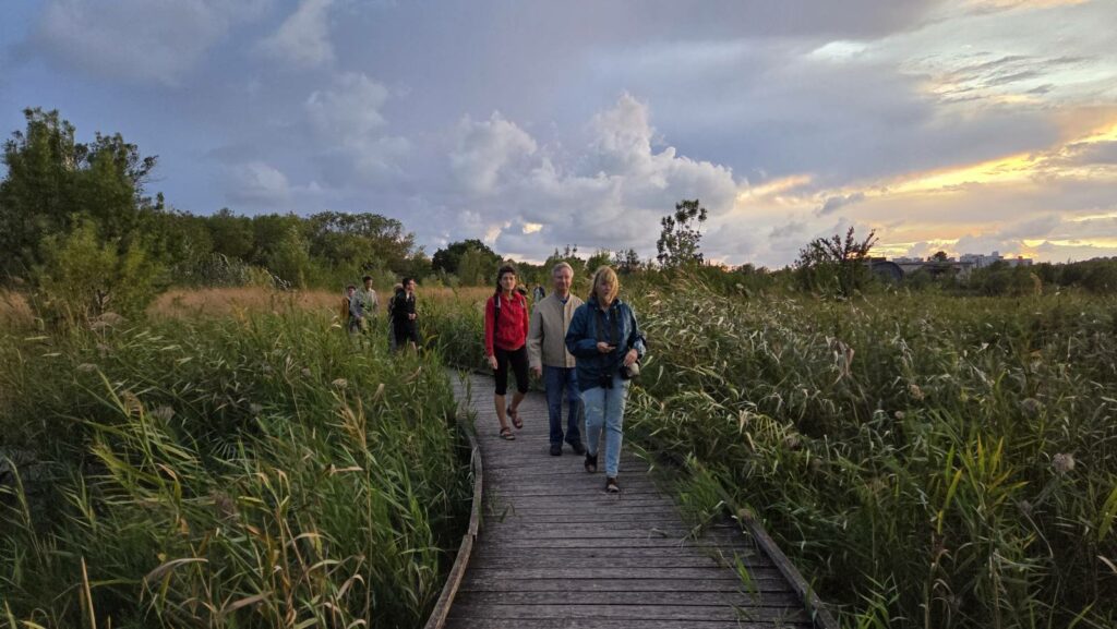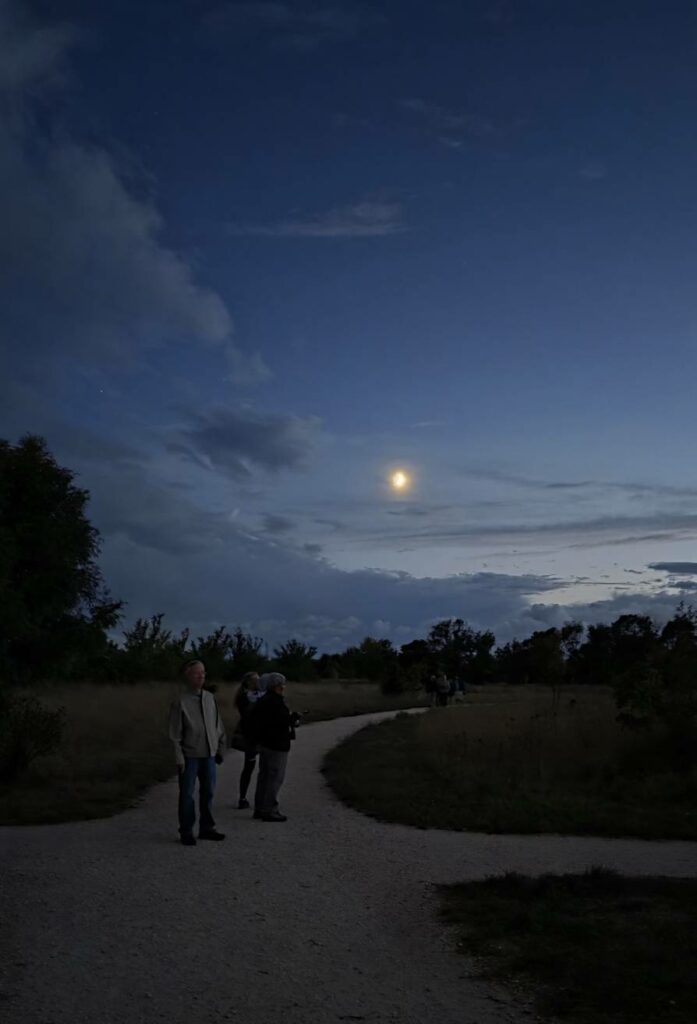 En dépit d’une météo pluvieuse et venteuse, nous étions 13 à répondre à ce rendez-vous crépusculaire dans l’espoir  de voir des chauves-souris et des étoiles.