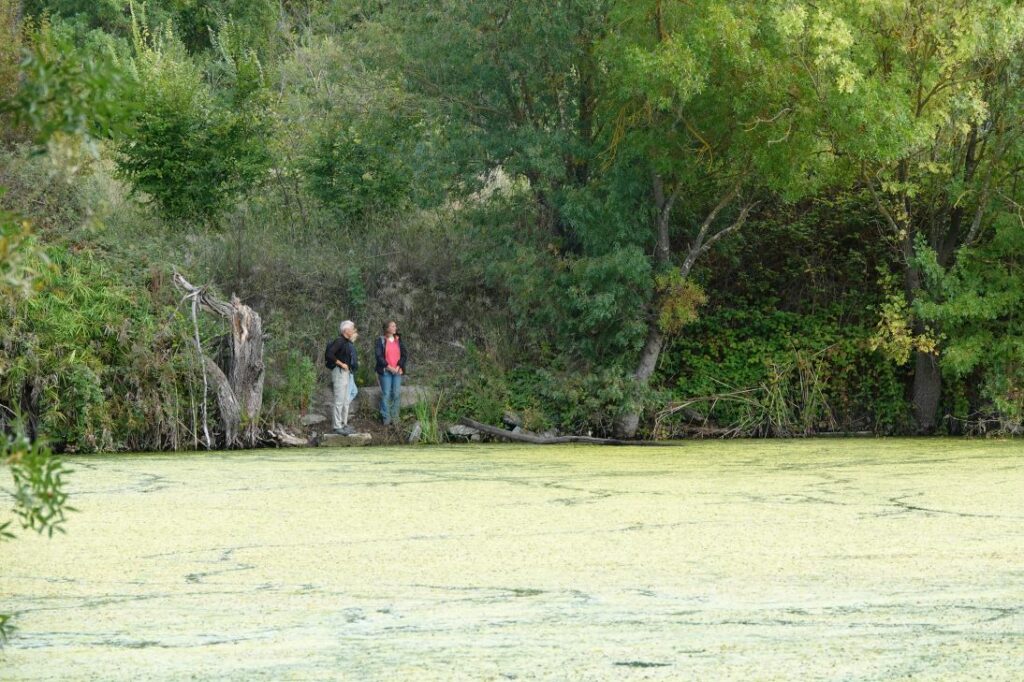 Laure et Michel essayant de récupérer l’hirondelle en détresse