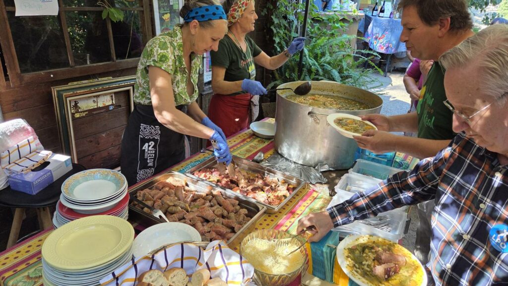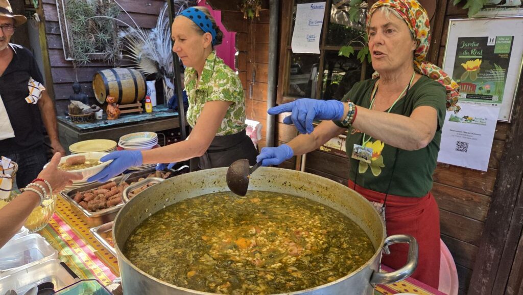 Ensemble nous partageons une savoureuse soupe au pistou le samedi et bien sûr la légendaire daube de phacomochère le dimanche !