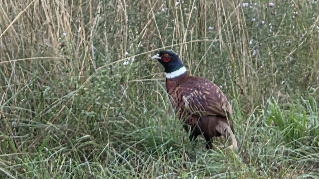 Nous serons les deux jours sous le charme d’un groupe de chardonnerets sédentaires au jardin, très actifs dans les grands pins Douglas. Notre animation musicale sera assurée, quasi non stop, par un charmand rouge-gorge habile et remuant dans le chêne tout proche.
