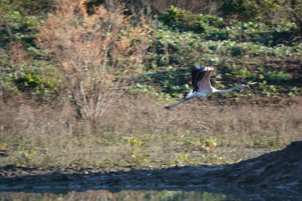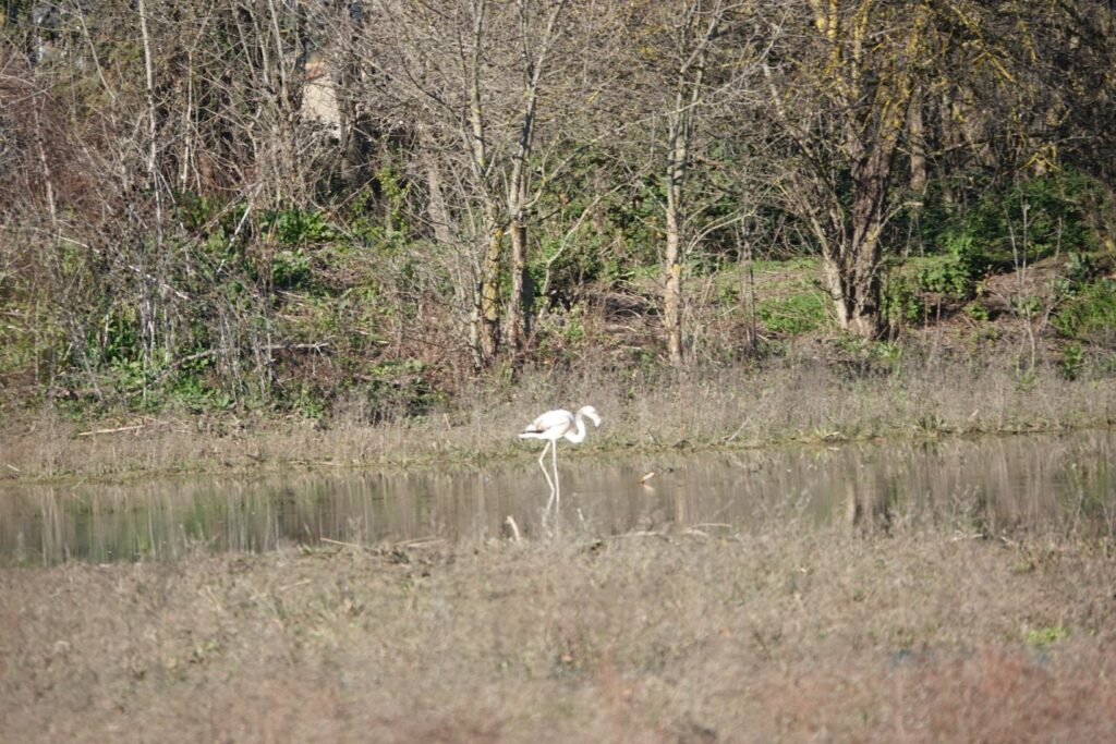 un flamant rose occupe la deuxième marre