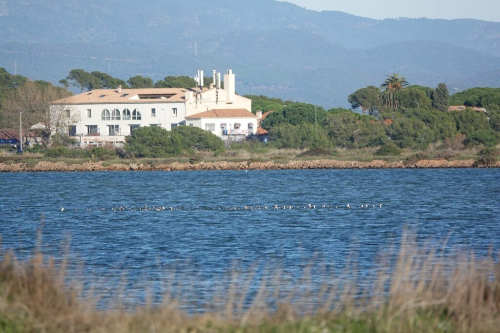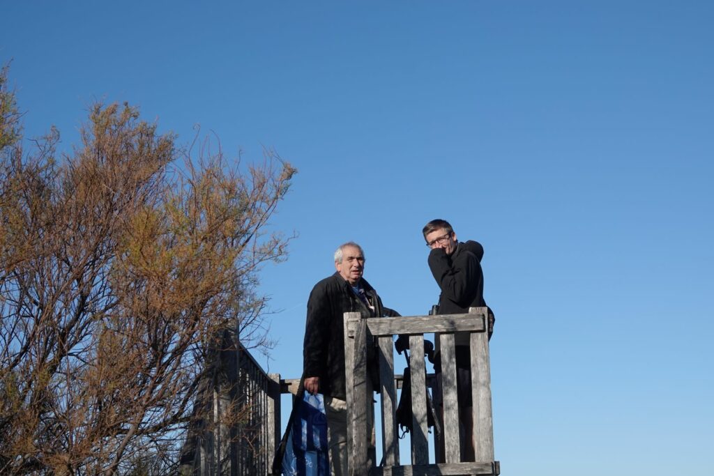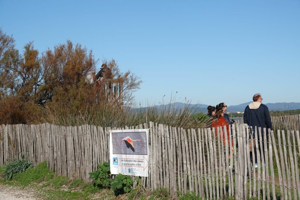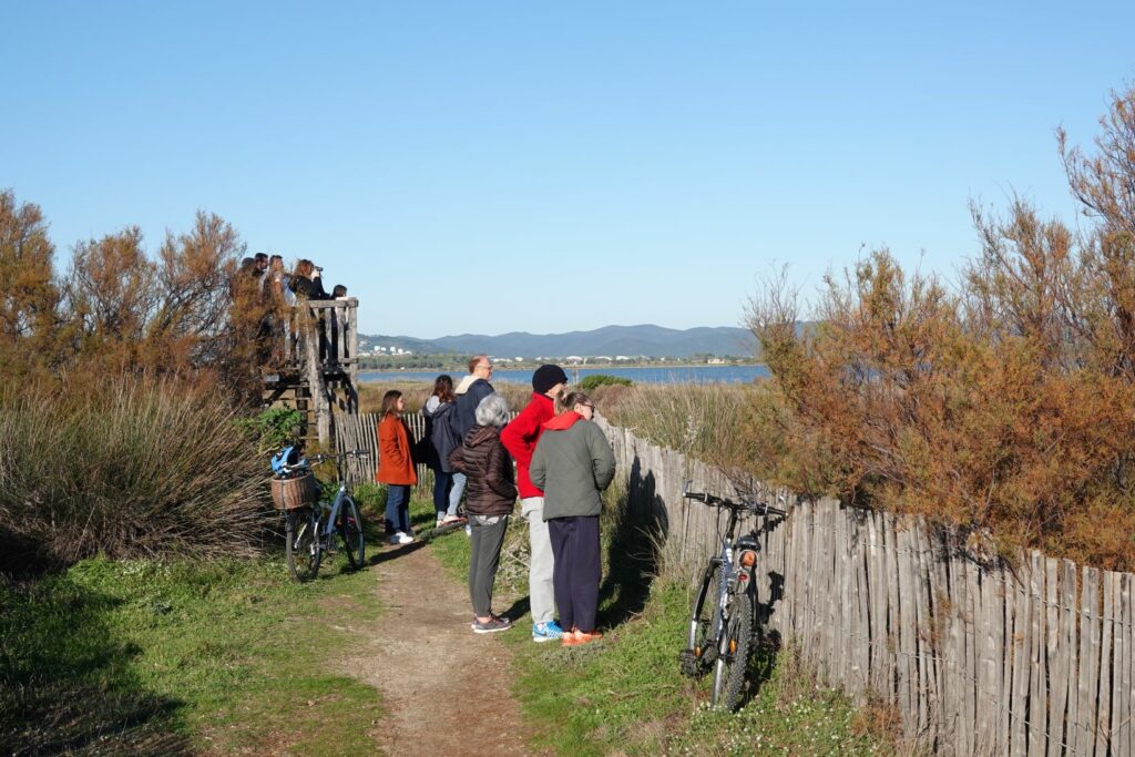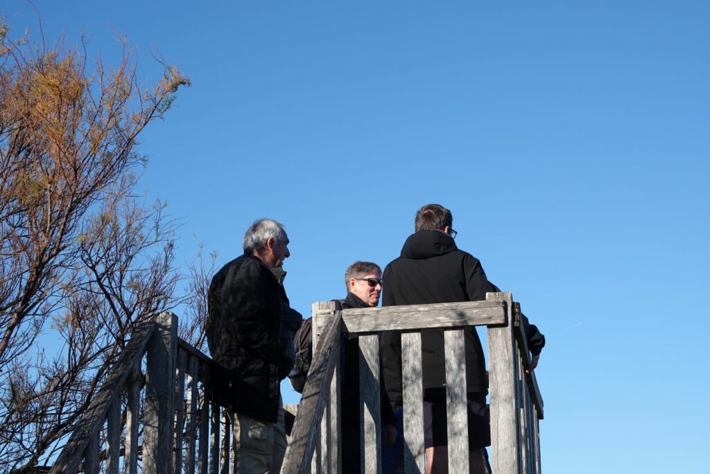 Il faut passer la route inondée pour arriver à l’observatoire, le premier est Benjamin, suivit de Sylvia et Marc puis de Philippe.