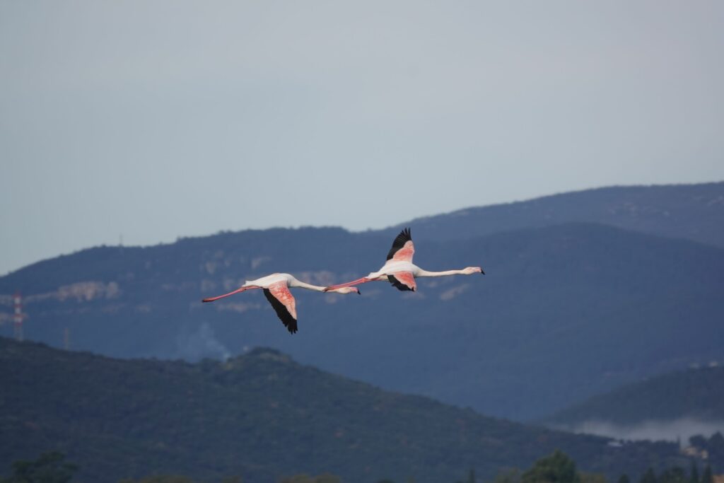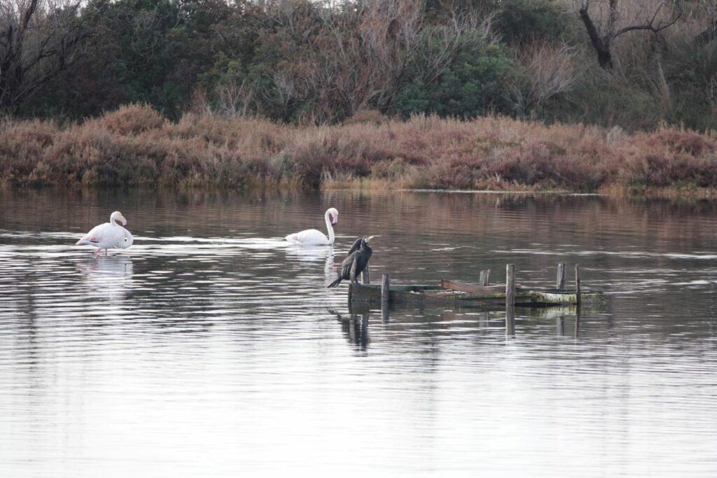 Si la star reste incontestablement le flamant rose qui nous émerveille toujours, nous avons également pu observer : des tadornes de Belon ; des chevaliers (guignette, cul-blanc, gambette, aboyeur) ; des aigrettes (grande et garzette) ; des grand cormorans ; des grèbes (castagneux et à cou noir) ; des avocettes élégantes ; des colverts, des sarcelles d’hiver ; un martin-pêcheur…