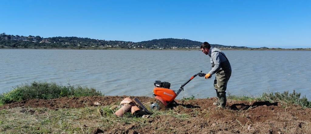 Arrivée sur place, grattage du site pour préparer la surface à la confection des nids par les oiseaux.