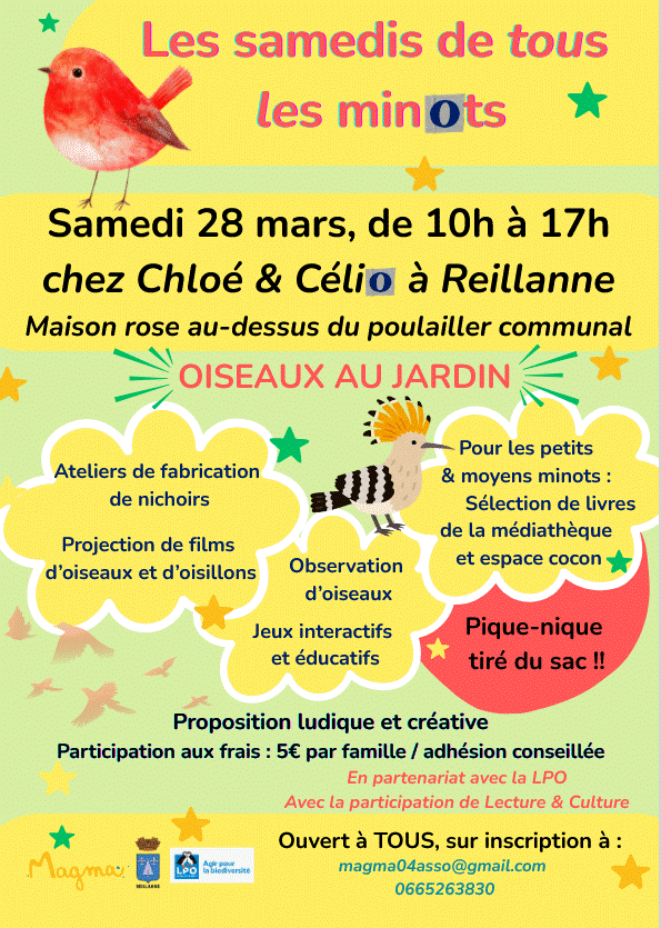Samedi 28 mars de 10h à 17h à REILLANNE les Samedis des Minots