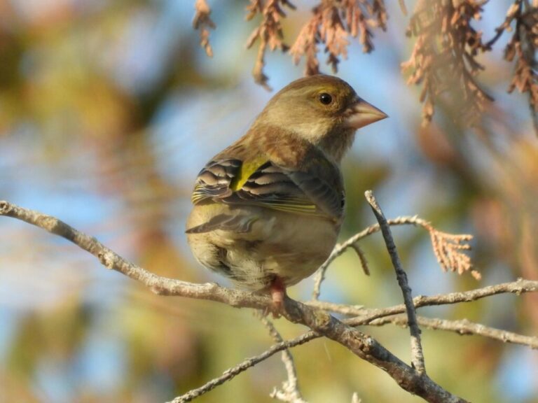 Le verdier d’Europe.Cet oiseau est un des 259 fringillidés présents dans le monde, son bec massif nous montre bien qu'il est granivore et est un habitué des mangeoires.Comme son nom l'indique , il est répandu du Portugal jusqu'au îles Sakhalines et au Japon.