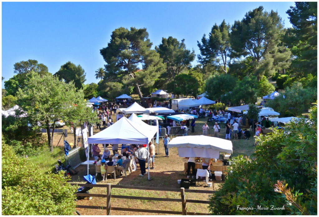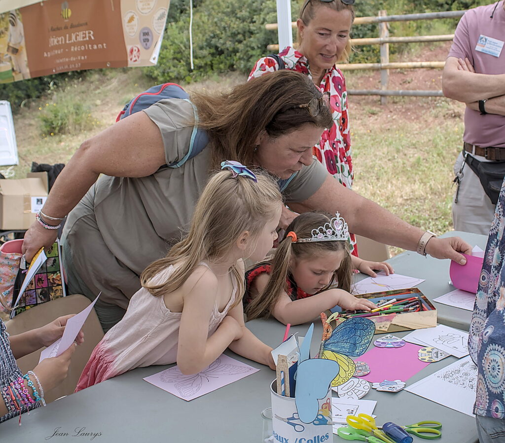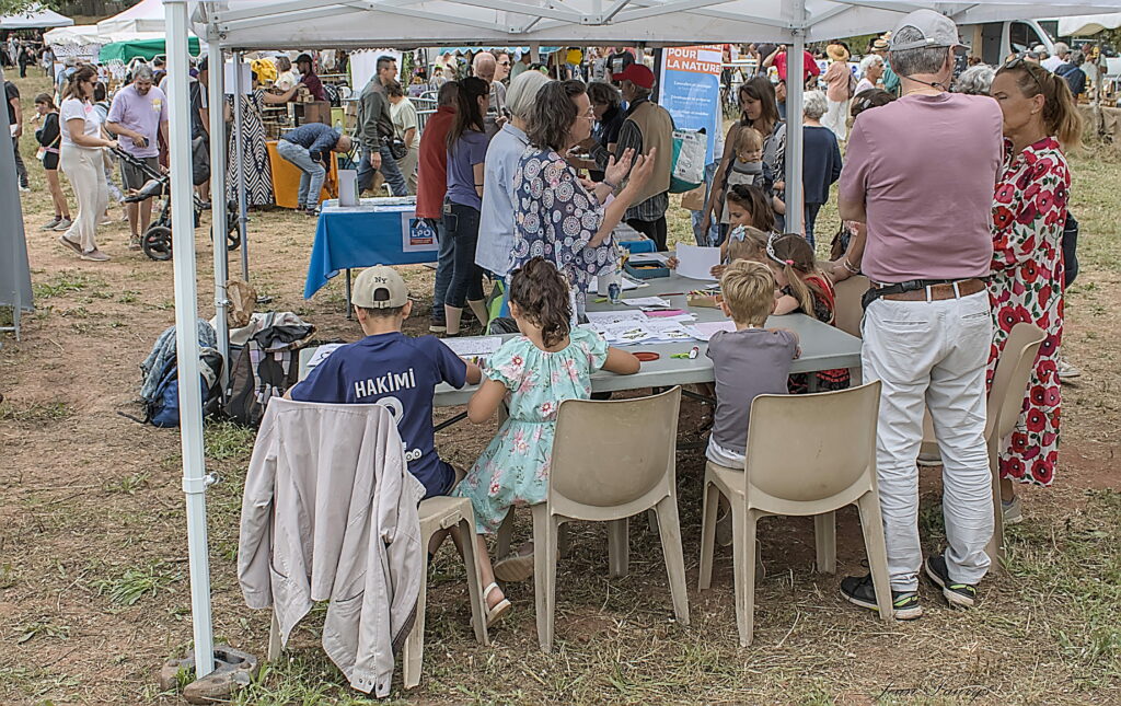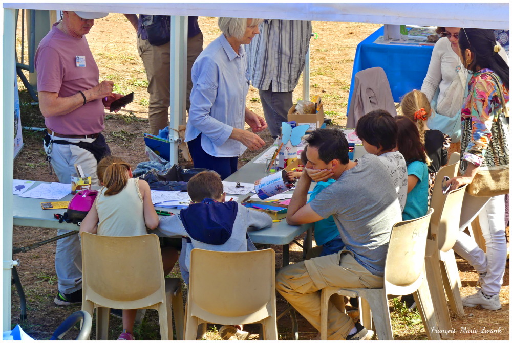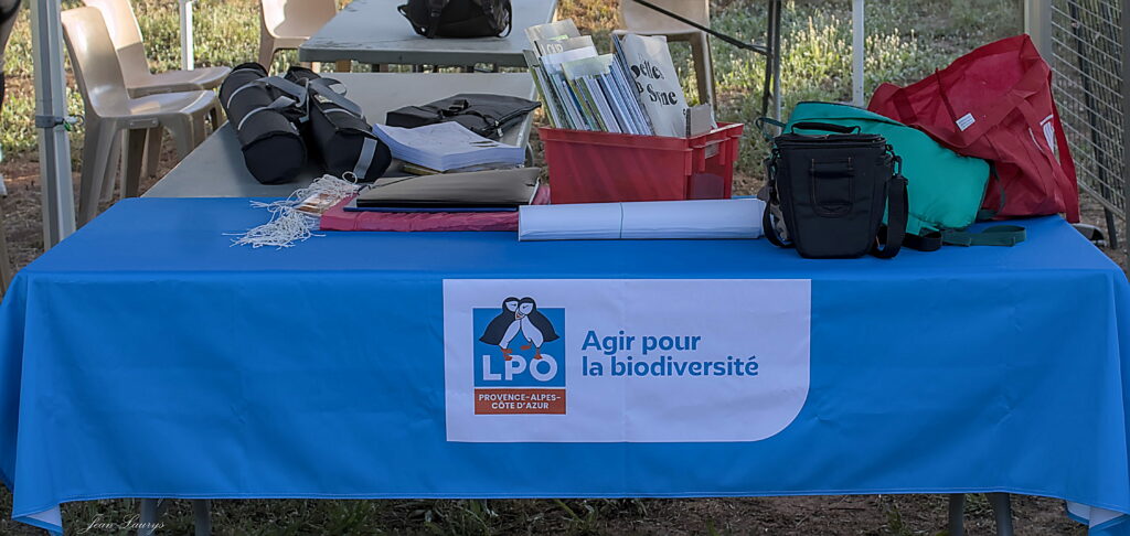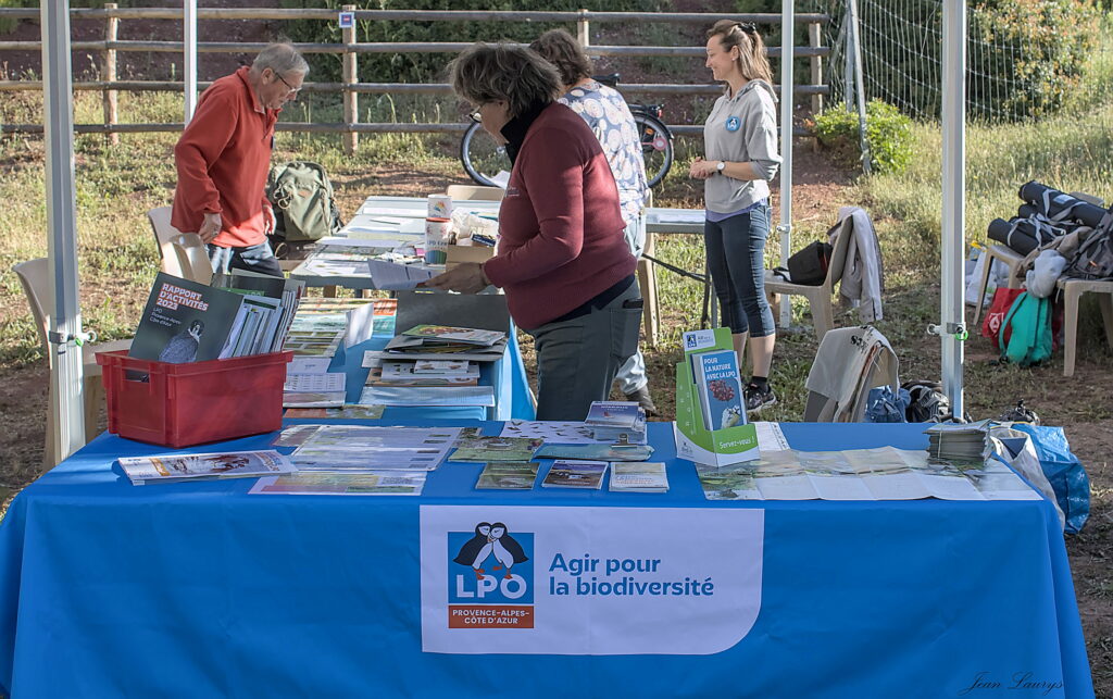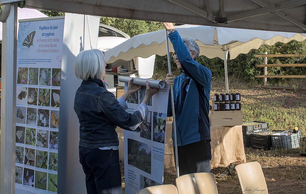 Hélène, Véronique, Karine, Gérard, Jean-Jacques et Jean, bénévoles LPO-PACA du groupe Littoral Ouest Varois, ainsi qu’Aline et François-Marie Zwank (Membres actifs à la LPO) installent leur stand basé particulièrement sur la découverte des pollinisateurs sauvages.