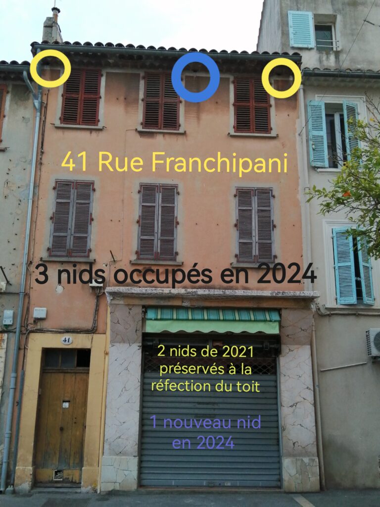 Jean-Jacques (bénévole du groupe « LOV » et responsable « martinets » ) a alors expliqué le travail de recensement des nids occupés par les martinets sur la commune de La Seyne, fait par les bénévoles du groupe depuis 2019. La Ville édite chaque année les informations recueillies par les bénévoles : adresse et photos des bâtiments, descriptifs des nids repérés, plan cadastral.