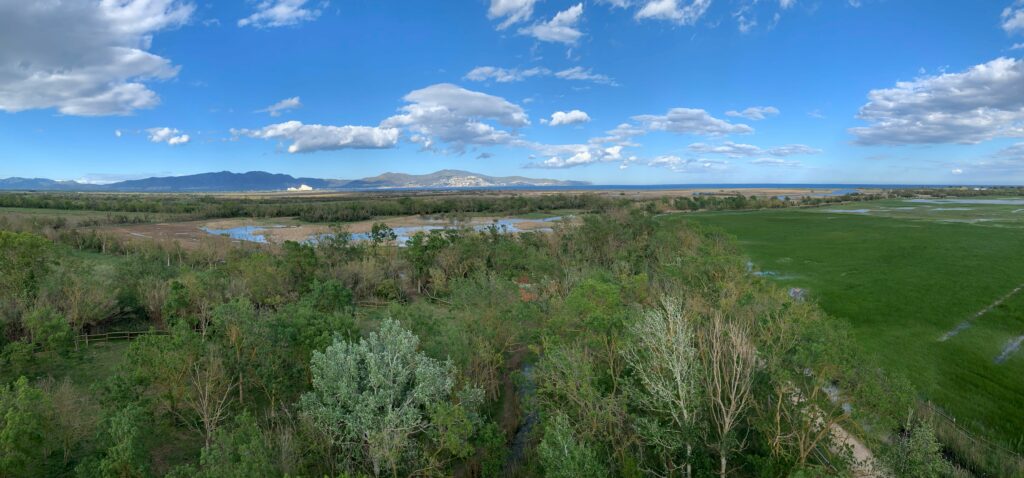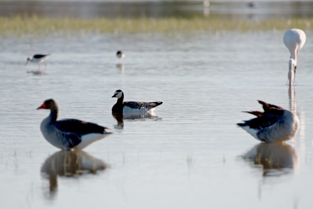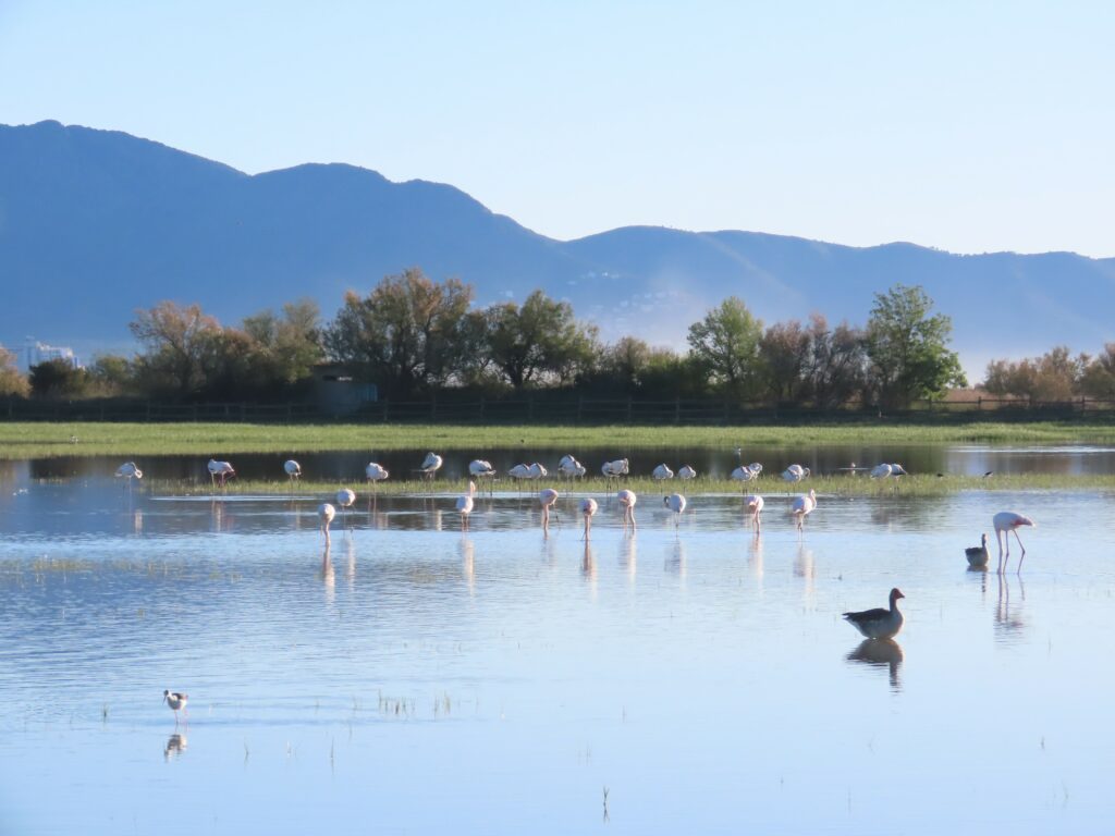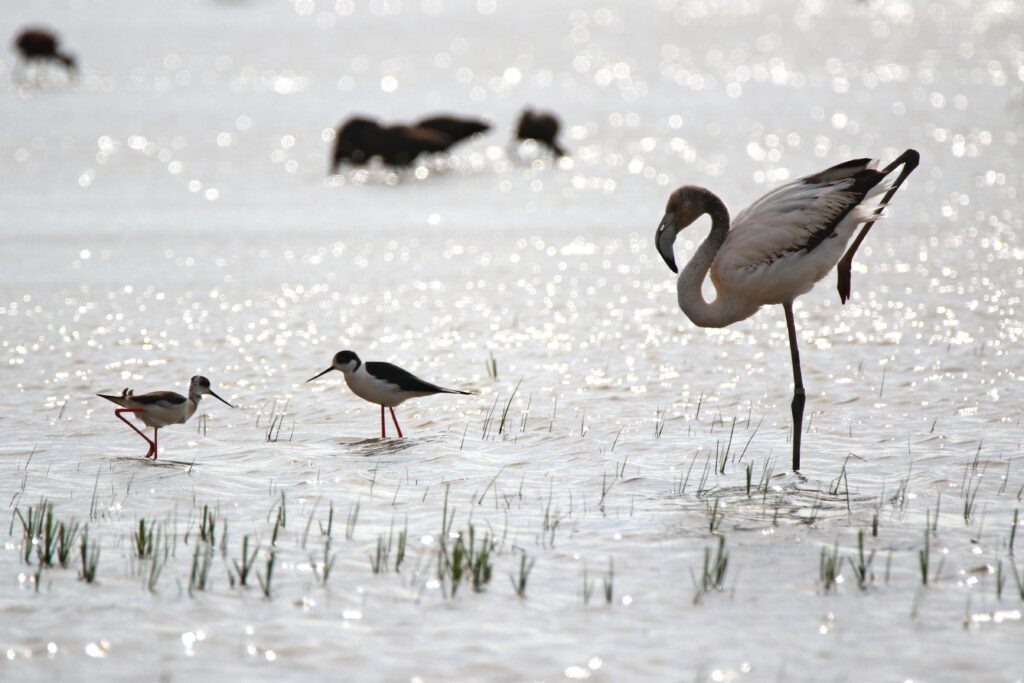 Au premier observatoire, le festival commence : Héron garde-bœuf, héron cendré, canard chipeau, ouette d’Égypte, flamant rose, canard souchet, ibis falcinelle, canard colvert, grande aigrette, grèbe castagneux, nette rousse, spatule blanche, hirondelle rustique, foulque macroule, gallinule poule d’eau, goéland leucophée, busard des roseaux, échasse blanche…