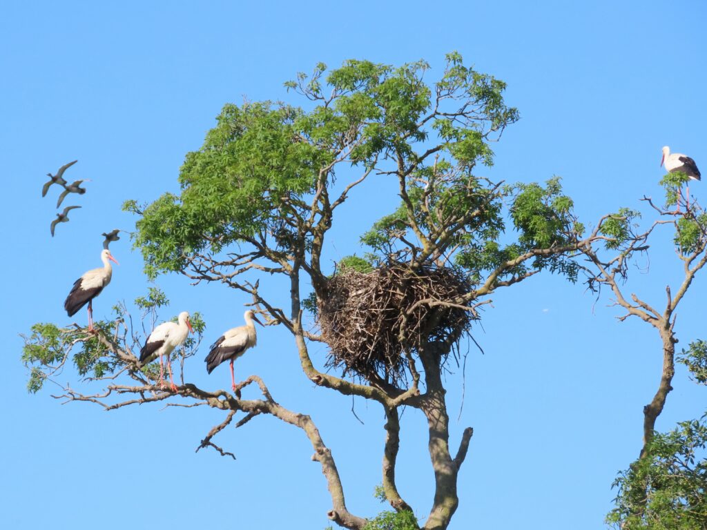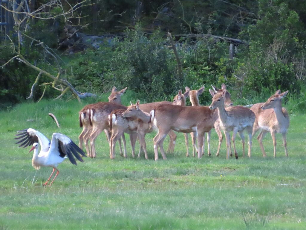 L’observatoire des daims nous permettra d’observer de très nombreuses cigognes blanches, des ouettes d’Egypte, des ibis falcinelles et, comme son nom l’indique, une harde de daims.