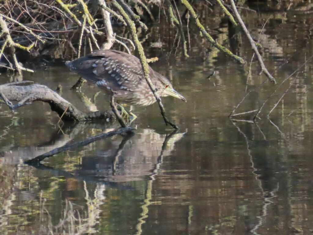 Tout au début du parcours, deux bihoreaux gris, un adulte et un juvénile, se cachaient dans les branchages. Plus tard dans la journée, le juvénile nous a offert le spectacle d’une partie de pêche, et l’adulte s’est montré de belle manière.