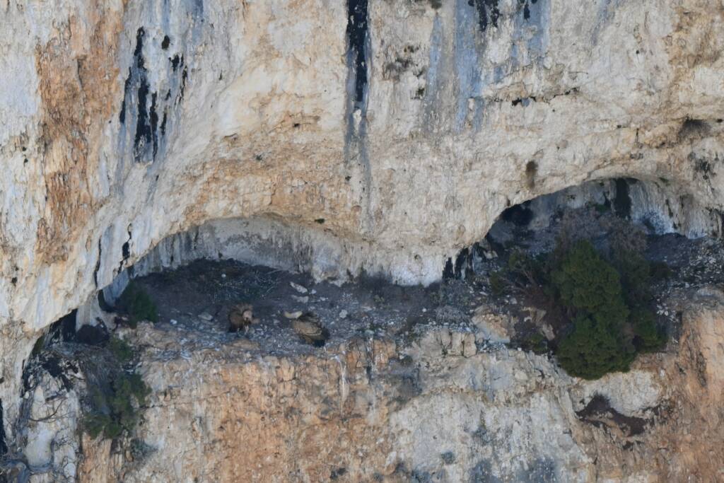 L’observation attentive de la falaise nous a permis de découvrir des individus se reposant à l’abri, ainsi qu’une demi-douzaine de nids occupés. Par l’une des photos prises alors, nous avons la preuve qu’au moins un œuf a été pondu cette année sur le site !