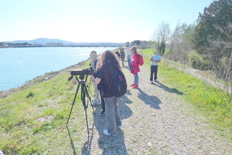 Par cette belle journée ensoleillée et sans vent du jeudi 19 mars 2026, les 23 enfants ont pu découvrir à l’aide de longues-vues et jumelles mises à disposition dans l’observatoire de Mérindol, les grands cormorans, les mouettes rieuses, une belle colonie de mouettes mélanocéphales de passage, un couple de grèbe huppé en train de préparer leur nid, quelques cygnes tuberculés, hérons cendrés, etc.