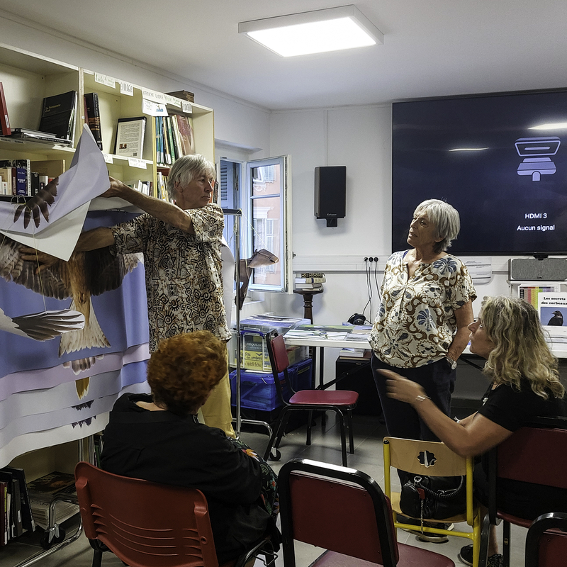 La médiathèque de L’Escarène a accueilli Bruno Machtelink et Joëlle Vionnet créateur de l’association les oiseaux du vent pour une conférence sur l’intelligence des corvidés.