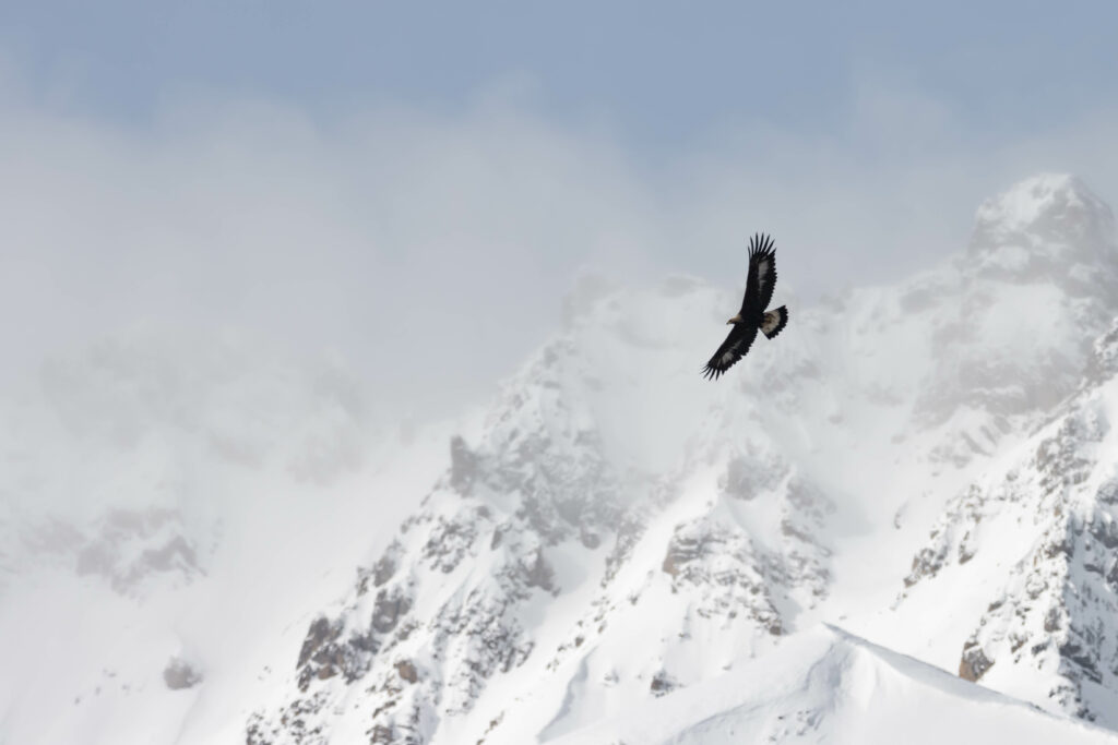 Ce grand rapace emblématique des Alpes installe généralement son aire sur une paroi rocheuse escarpée, à l’abri des dérangements. Le couple reste territorial à l’année, et il arrive qu’il dispose de plusieurs aires dans son territoire, alternant leur utilisation selon les années. La femelle pond en général 1 à 2 œufs entre février et mars, et la période d’élevage du jeune s’étale jusqu’à juillet voire août. Toute perturbation à cette période peut compromettre la réussite de la reproduction.