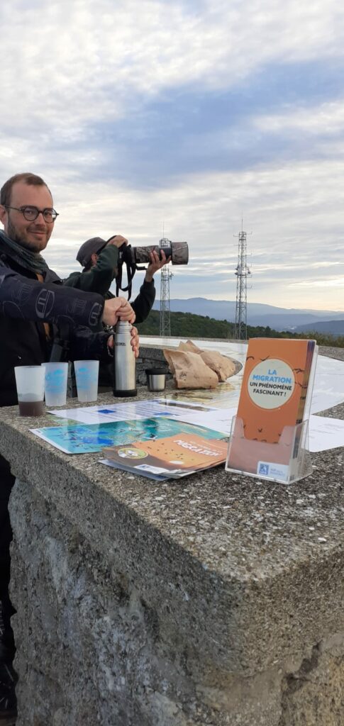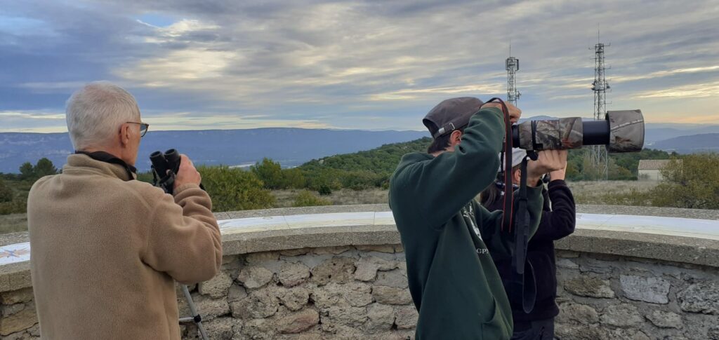 Dominique, Gilles, Sylvie, Lorenzo, Pascal, Benoit et Florent ont accueilli les visiteurs de passage et ceux qui, venant du Vaucluse, avaient choisi notre point d’observation. A leur disposition, des plaquettes et affiches expliquant la migration, complétées bien sûr par les explications des ornithologues présents.