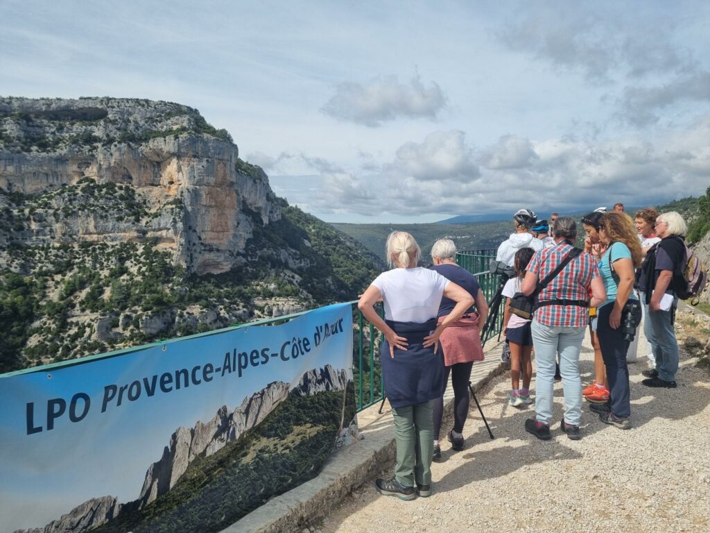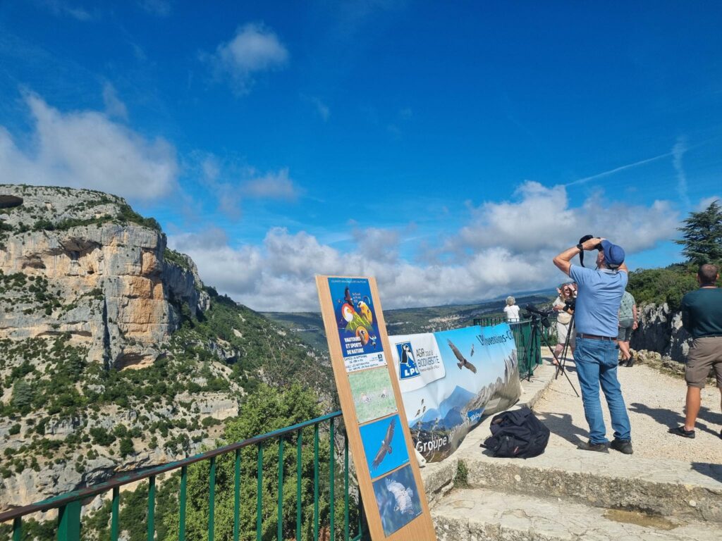 L’ensemble des bénévoles du GL Ventoux présent.e.s sur le site ont pu échanger toute au long de la journée avec un public habituellement très hétéroclite du Belvédère du Castelleras que nous avons estimé à environ 250 personnes. Ils provenaient de France et de différents pays Européens, venus à vélo, en moto ou en voiture. Tous ont été très reconnaissants de pouvoir découvrir et observer les Vautours grâce aux lunettes d’observation, et comprendre leur histoire sur ce site exceptionnel.