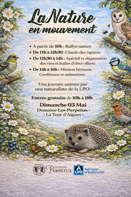 Journée organisée au domaine des Perpetus à la Tour-d’Aigues, domaine oléicole et viticole, Refuge LPO pour améliorer l’accueil de la faune sauvage et la biodiversité.